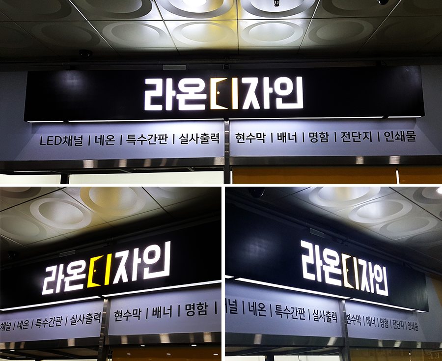 철판에 글자 부분을 타공하고 LED를 내장시켜 글자 부분에만 빛이 나오는 간판으로 글자의 직접적인 효과보다는 분위기로 주목시키는 효과가 있는 간판입니다. 고가형 간판이지만 내구성이 좋으며 심플하고 모던한 느낌으로 고급스러운 연출이 가능합니다. 주로 분위기나 느낌을 중요시하는 곳에서 많이 선호하시고 은은한 느낌을 내기 때문에 부담스럽지 않아 포인트 간판으로도 많이 사용됩니다.