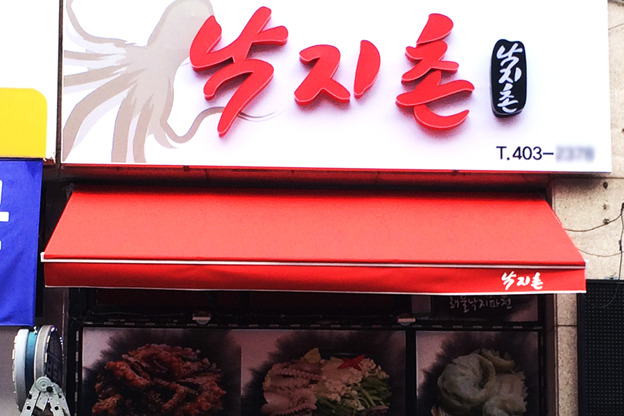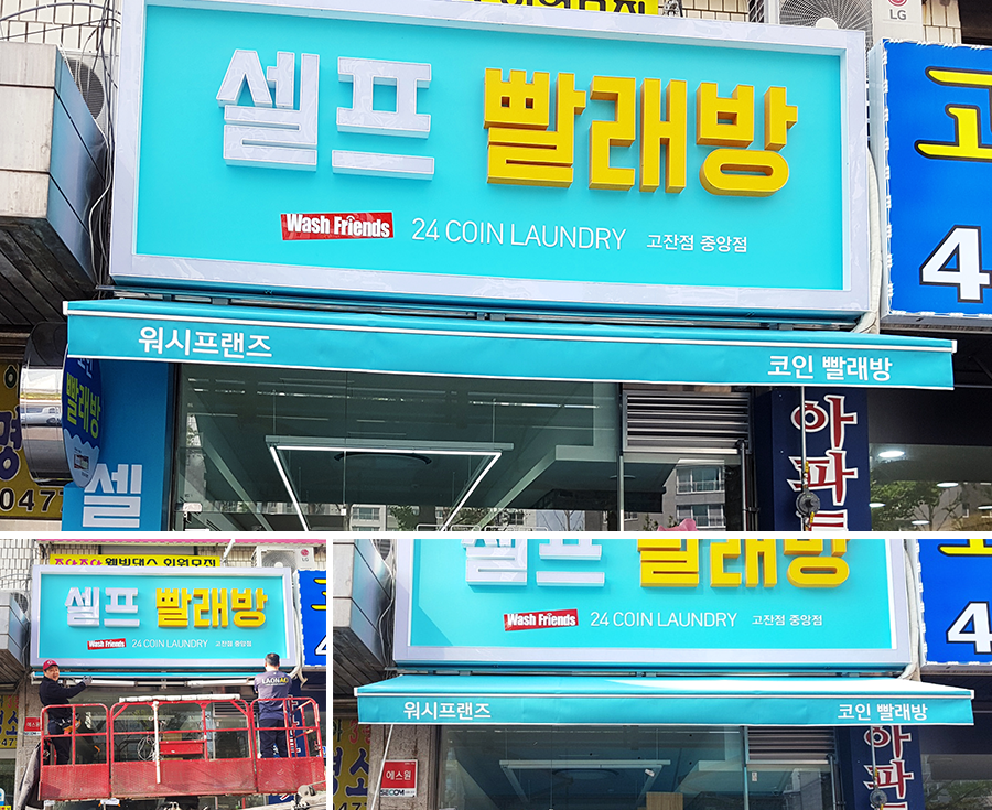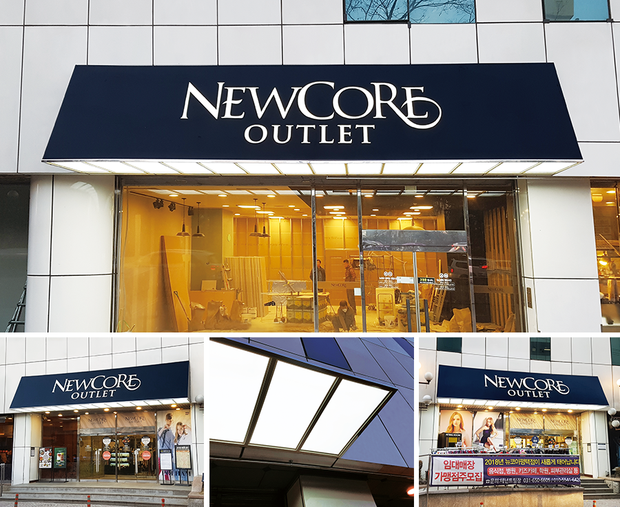 신주는 앞면 뿐만 아니라 옆면까지 금속으로 된 고급 간판입니다.