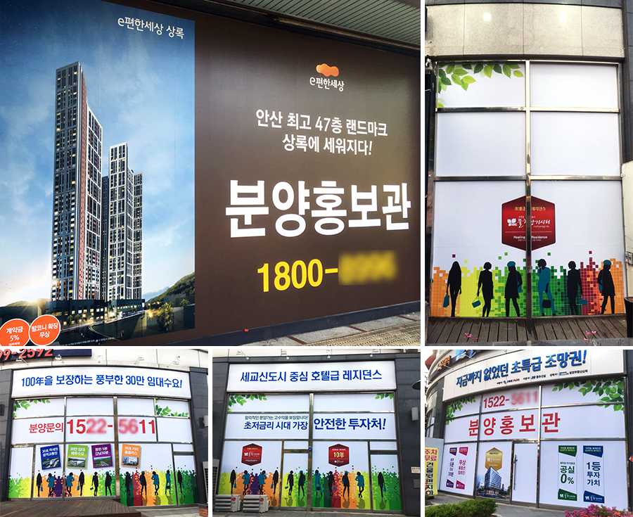 대표적으로 쉽게 볼 수 있는 실사 시트지는 가게 전면 유리창에 붙어 있는게 대표적이며 일반 시트지는 실외용, 실내용, 조명용이 있습니다. 다양한 색상뿐 아니라 원하는 이미지나 모양을 자유롭게 출력 및 커팅 할 수 있어 다양한 표현을 할 수 있는 것이 가장 큰 장점입니다.